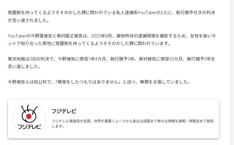 - 執行猶予ついてるしなんでそんな懲役がって思ったら