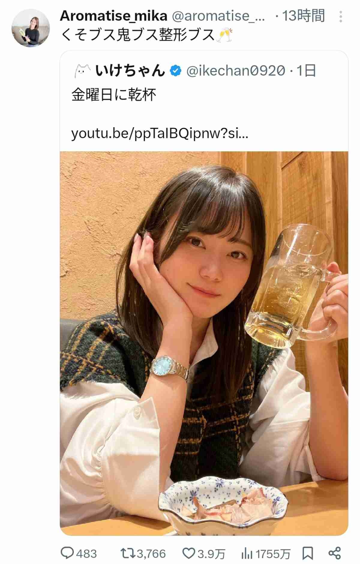 いけちゃん「くそブス鬼ブス整形ブスに寝取られて可哀想。本当には愛されてなかったんですね」
