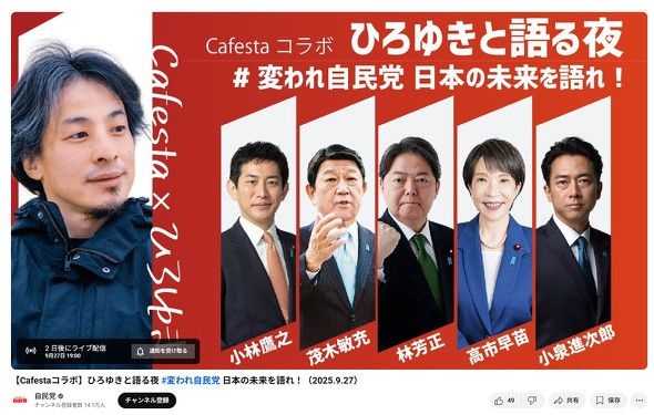 自民党、ひろゆき氏を総裁選ネット討論会のMCに 9月27日午後7時からYouTubeで