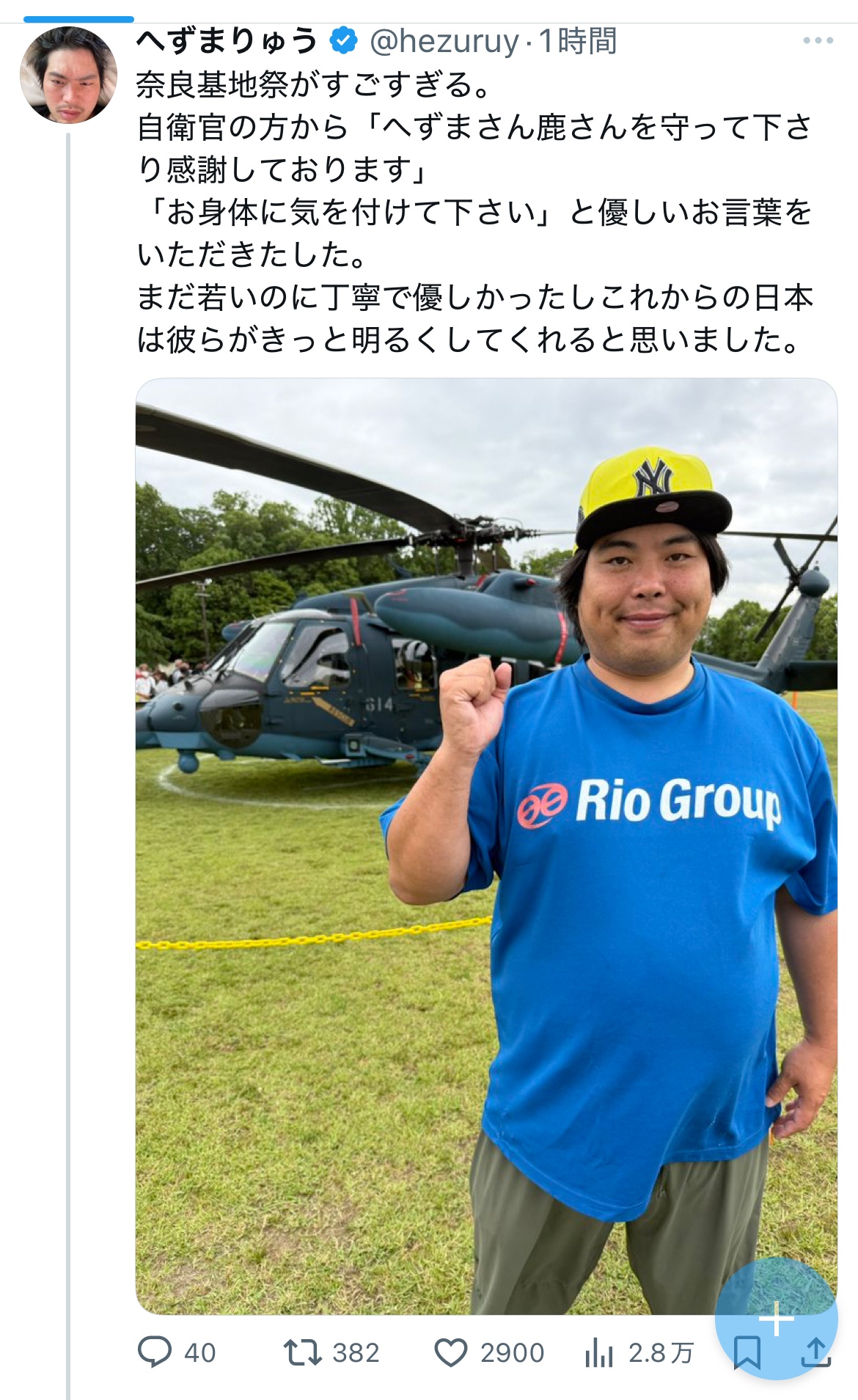 自衛隊「へずまさん鹿を守ってくれてありがとう」