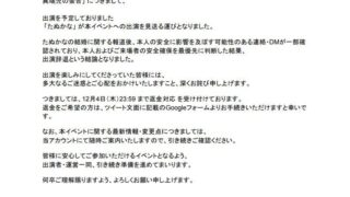 なんGたぬかなさん身の危険を感じイベント辞退www