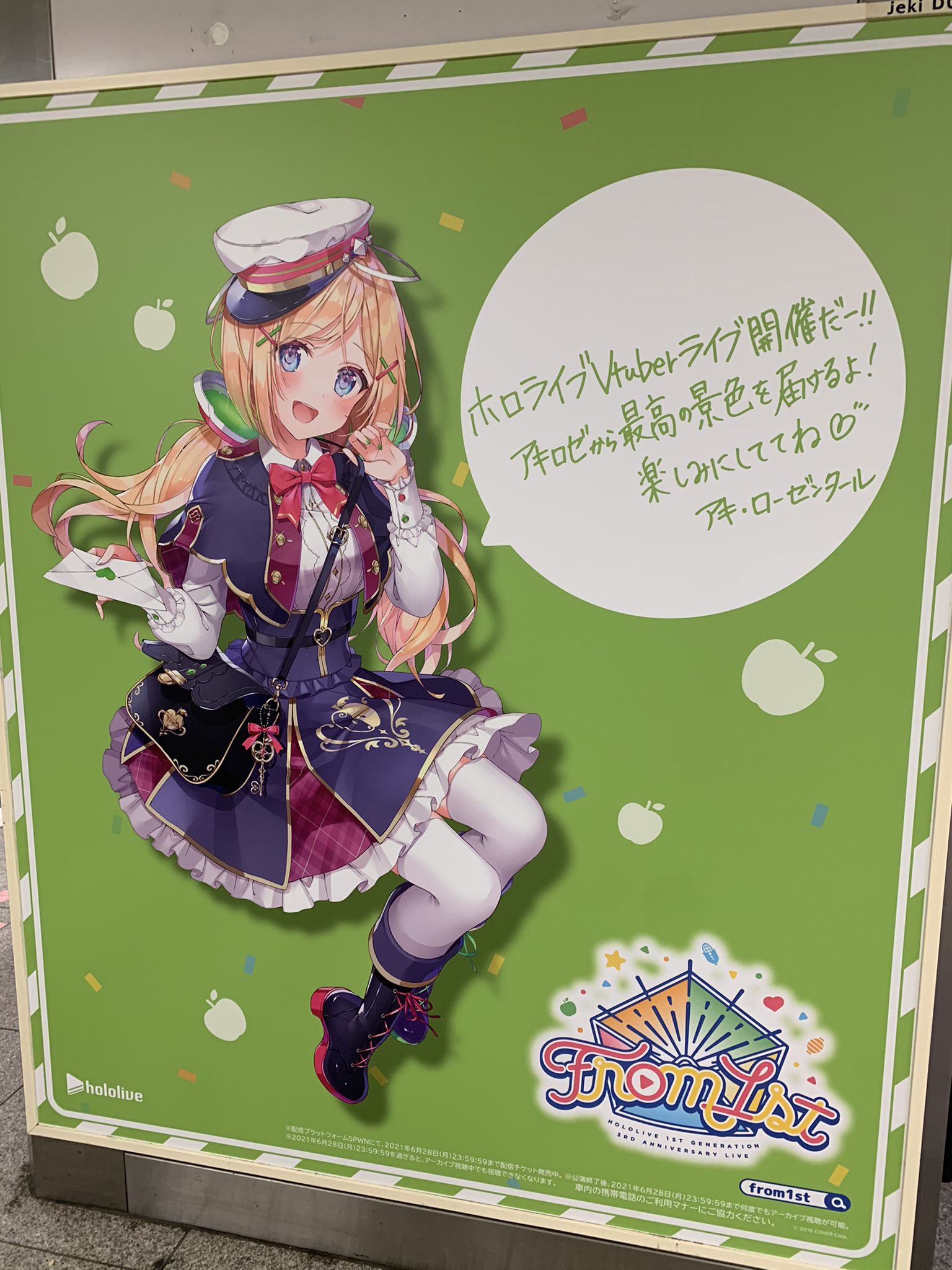 ホロライブ1期生の3周年を記念したライブ「hololive 1st Generation 3rd Anniversary LIVE『from 1st』」の開催を記念して、JR秋葉原駅に広告が掲載されます。