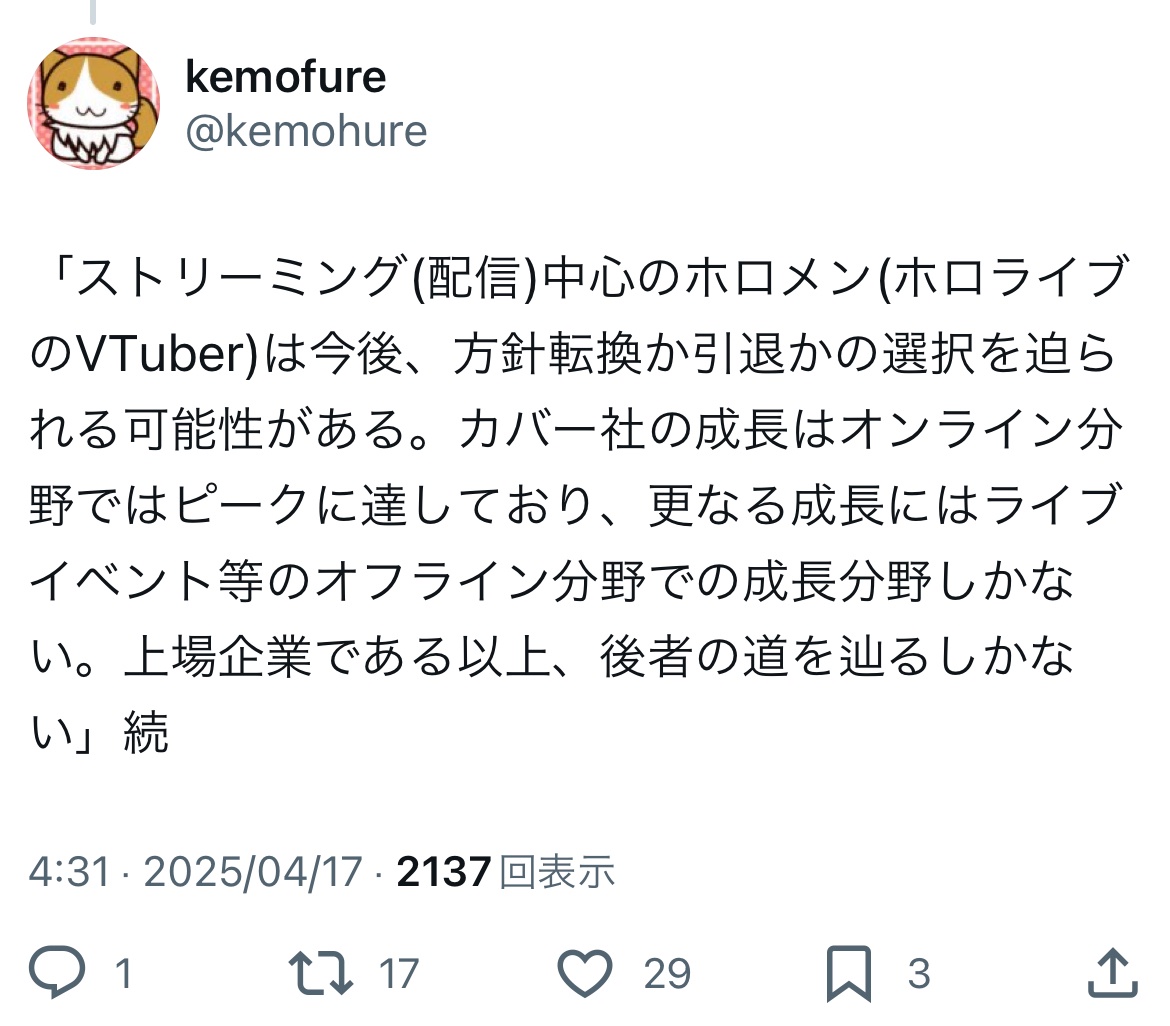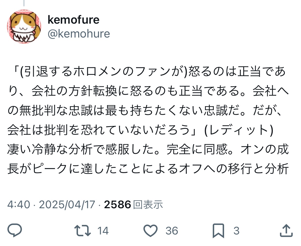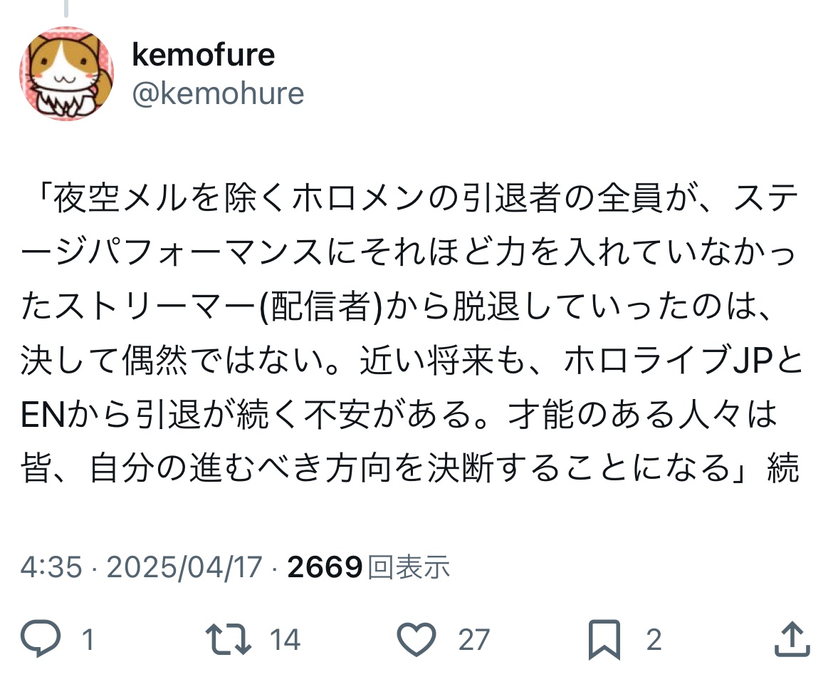 - ろくに配信すらしてないようなのが辞めるんだからその側面はあるとは言える