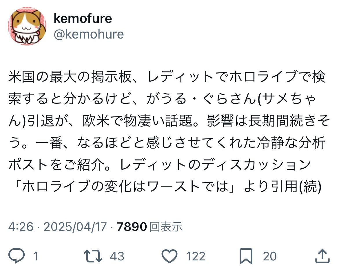 - 海外ホロライブのredditって確かカバーが管理してるだろ