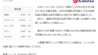 嫌儲【決算速報】エニーカラー、今期経常を205億~215億円に上方修正、VTuberにじさんじグッズ販売・イベントが計画を大きく上回る