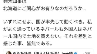 芸スポへずま市議の妻「高市早苗さんが総裁になってから国が外国人の土地購入規制の調査に入りました」「自民と公明が連立離脱して良かった」