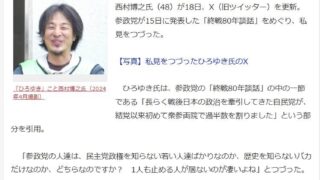 芸スポひろゆき氏「参政党の人達は…民主党政権知らないのか、歴史を知らないバカだけなのか、どちらなのですか?」と私見