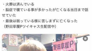 ニュー速速報 金バエ死去 野田草履が語る(画像あり)