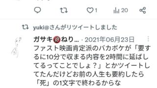 嫌儲ネトウヨ中卒生活保護暇アノン「ファスト映画とか見るアホはとっとと死んで人生も短縮するべきですよ」