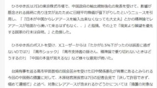 嫌儲ひろゆき「精神論でレアアースが地面から湧いて来るはずもなく…、現実より願望を優先する国家の行末は自明」