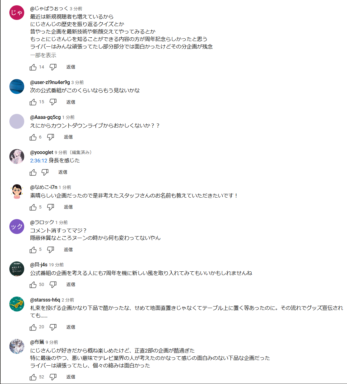 - なんかコメント欄で企画の質が~みたいな評論ぶってる奴いるけど周りからはVの視聴者なんて寒い内輪ノリを楽しんでるようにしか見えてないぞ