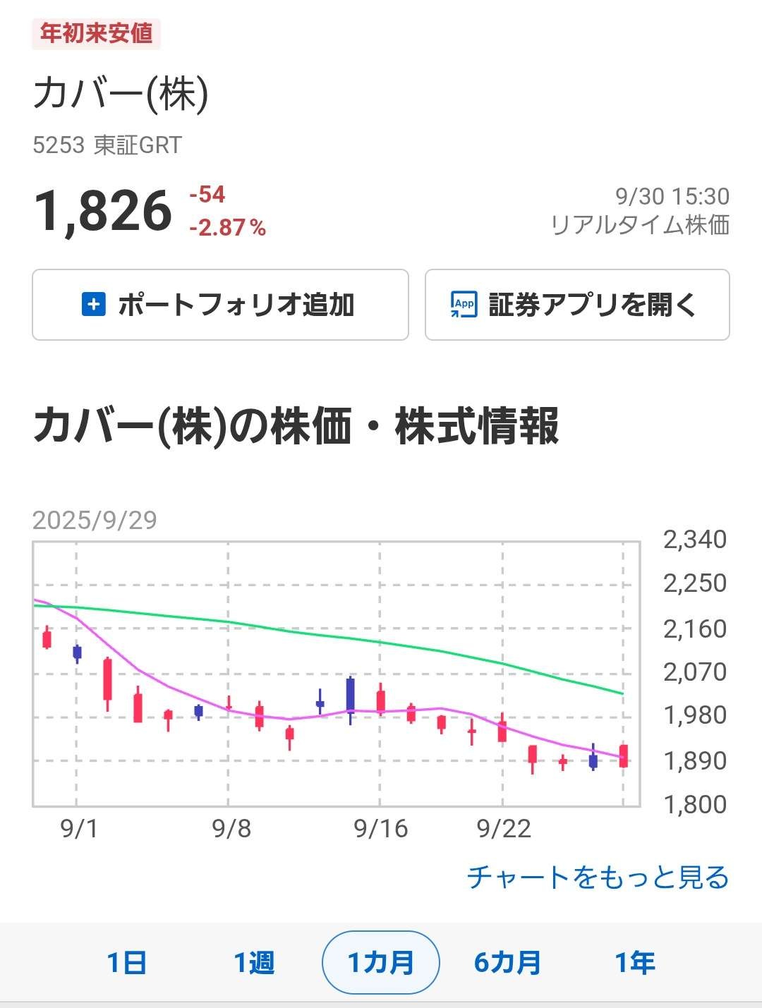 Vtuber事務所のカバーの株価、ド派手に終わりまくる