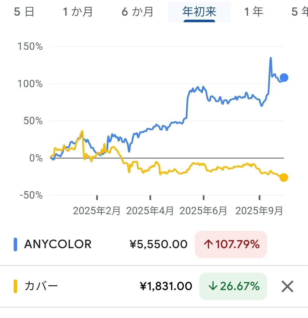 個別Vのキャラで見たら俺でも知ってるのがいるのはカバーの方なのに、エニーカラの方が株価圧勝ってのは面白いよね