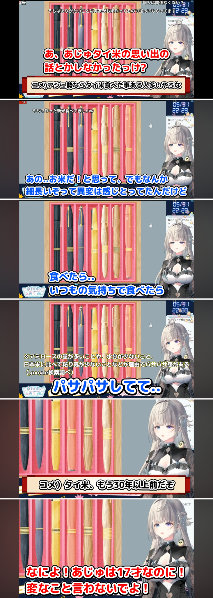 Vtuber本阿弥あずさ(通称あじゅ姉17歳)さん、「タイ米」の味の思い出を語ってしまう