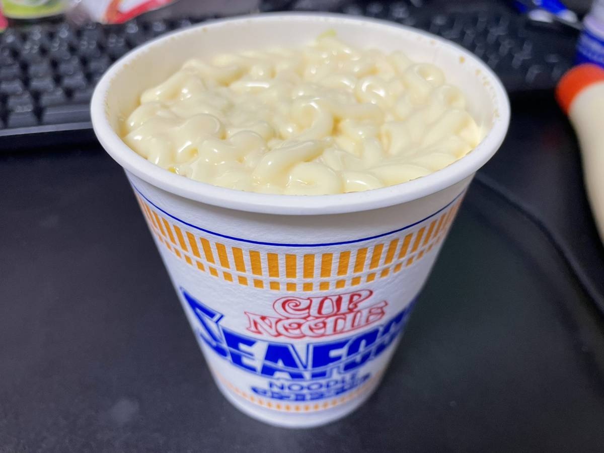 何かイヤなことがあった日にはカップヌードルに「マヨネーズ」を「鬼足し」してみてください。ためらう必要はありません。酸味とコクがあなたを救ってくれるはずです。