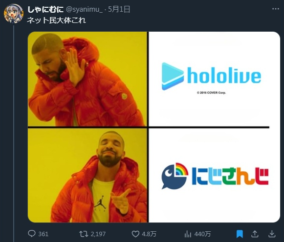 X民「にじさんじはいいけどホロライブは無理」→5万いいねwwwwwwwwww