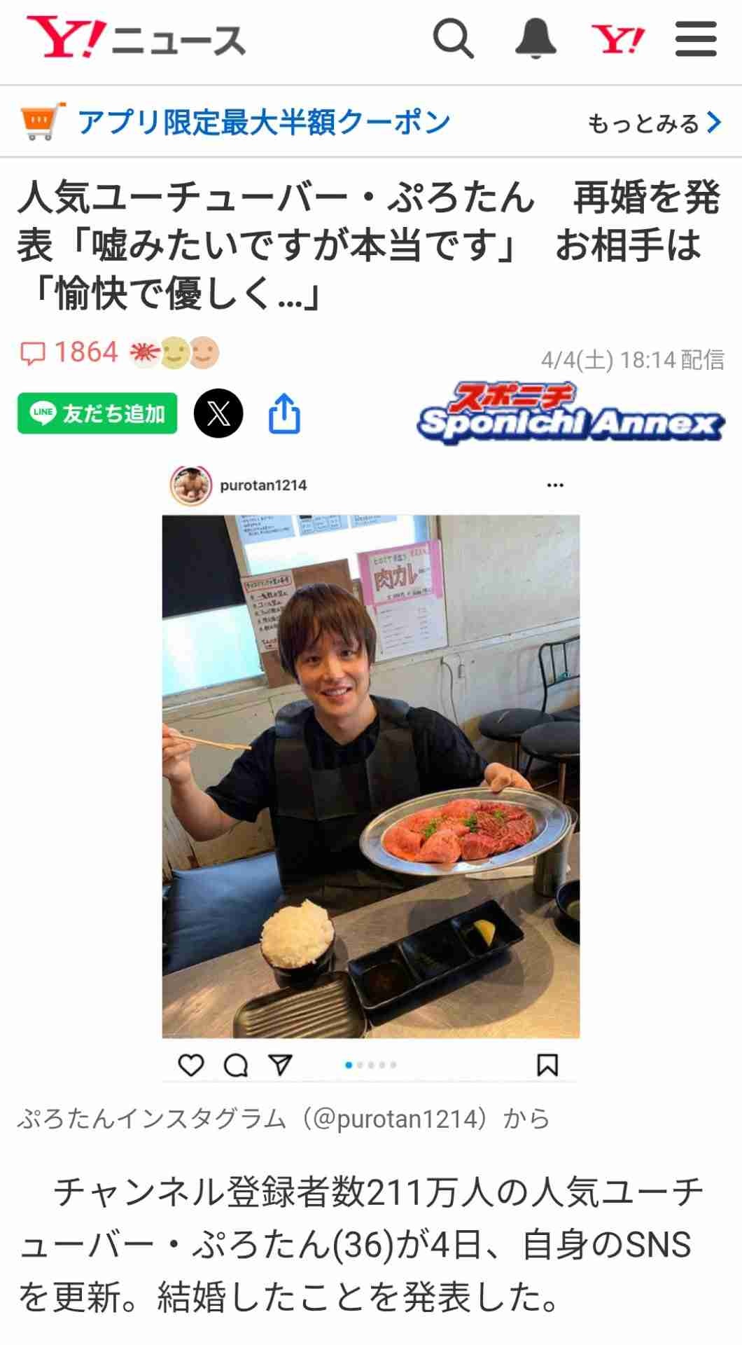 人気ユーチューバー・ぷろたん 再婚を発表「嘘みたいですが本当です」 お相手は「愉快で優しく…」